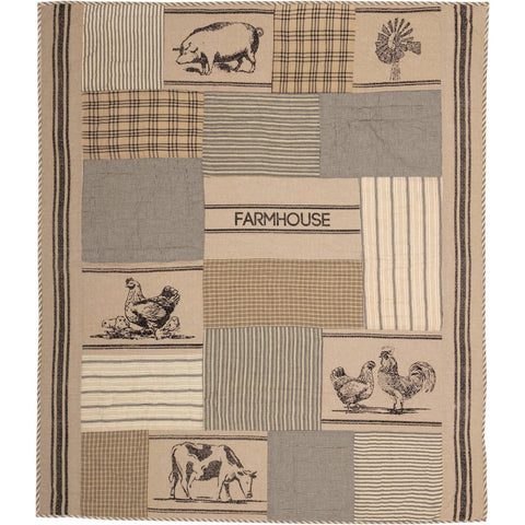 Sawyer Mill Charcoal Farm Animal Quilted Throw, 50x60 in - VHC Brands