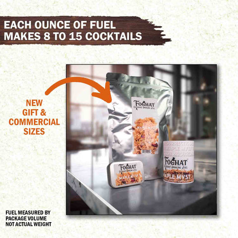 Foghat Culinary Smoking Fuel - Maple Myst is a floral symphony of aged maple wood, vanillan and flower petals. This mild and slightly sweet flavor lends itself well to spirits both neat and on the rocks. For food, poultry, small game birds, vegetables and cheeses will come alive with Maple Myst.