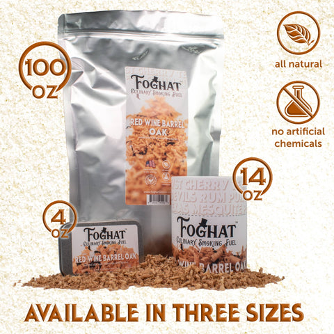 Foghat Culinary Smoking Fuel: Red Wine Barrel Oak, 4oz - ThousandOaksBarrelCo.