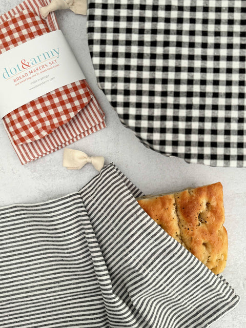Silver Stripe and Check Bread Makers Set, Bread Bag & Bowl Cover - Dot and Army