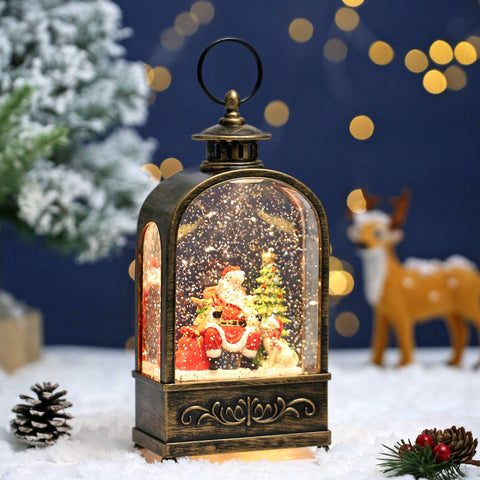 Add a nostalgic touch to your holiday decor with the Christmas Vintage Snow Globe Lantern. This charming piece features a retro-style design with swirling snow and festive holiday scenes. Measuring 4.3 x 2.3 x 9.4 in (10.9 x 5.8 x 23.9 cm) and crafted from metal, it weighs 2.7 lb. The built-in lights provide a soft, warm glow, creating a cozy atmosphere perfect for mantels, tables, or living rooms. A delightful gift for friends and family, this vintage snow globe lantern brings timeless charm to any Christmas setting.